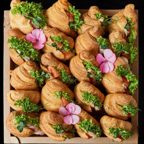 - Міні круасан з лососем слабосоленим, авокадо, сирним мусом та зелень