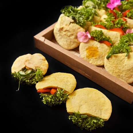 Піта з печеною фетою, помідором чері, огірком та зеленню